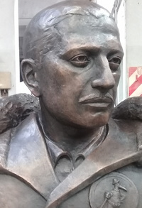 Los rostros que están en el bronce de los Exploradores Antárticos, miran hacia el sur, hacia la Antártida Argentina.