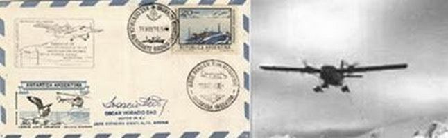 Enganche en vuelo para el retiro de correspondencia en la Antártida (21 de mayo de 1973) Con un avión de la Base Aérea Teniente Matienzo en la Estación Científica Almirante Brown |
