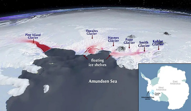 El colapso de Thwaites sería especialmente alarmante, ya que contiene suficiente agua para elevar el nivel del mar en más de 60 centímetros, y actúa como tapón de toda la capa de hielo de la Antártida occidental.